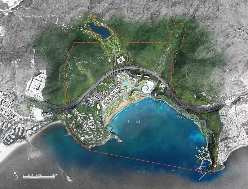 In the scheme, the concept of "boundless new marine paradise" is put forward. Based on the fractal theory and the integrated design of land and sea, and considering the ecological protection, disaster prevention and the feasibility of engineering technology, the sea area utilization mode is innovated to expand the limited space of Xiaomeisha resort.