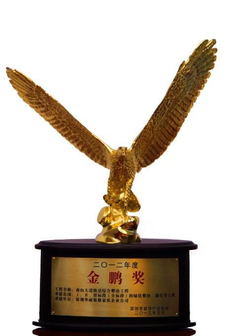 集團(tuán)參股企業(yè)華麗裝修家私企業(yè)公司承建的“南山大道街景綜合整治工程Ⅲ標(biāo)段”喜獲2012年度深圳裝飾工程金鵬獎(jiǎng)(公裝類)。2013年8月,深圳市裝飾行業(yè)協(xié)會(huì)授予華麗公司“深圳市裝飾工程金鵬獎(jiǎng)”獎(jiǎng)杯和證書(shū),這是華麗公司繼2002年以來(lái)第五次榮獲 “深圳市裝飾工程金鵬獎(jiǎng)”。該獎(jiǎng)是我市優(yōu)質(zhì)裝飾工程獎(jiǎng),也是我市裝飾工程市級(jí)質(zhì)量獎(jiǎng),根據(jù)《深圳市裝飾工程金鵬獎(jiǎng)評(píng)選辦法》有關(guān)規(guī)定,深圳市裝飾行業(yè)協(xié)會(huì)秘書(shū)處組織專家對(duì)2012年度企業(yè)申報(bào)“金鵬獎(jiǎng)”資料及工程現(xiàn)場(chǎng)認(rèn)真檢查評(píng)比,經(jīng)“金鵬獎(jiǎng)”評(píng)委會(huì)評(píng)審?fù)ㄟ^(guò),華麗公司榮獲此獎(jiǎng)。